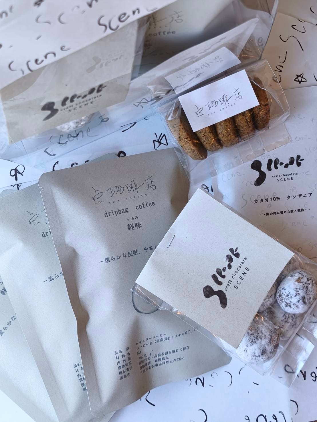 点珈琲の珈琲とSCENEのチョコレートの商品で感じてもらえると嬉しいです。